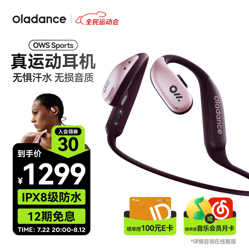 OladanceOWS Sports开放式耳机不入耳式蓝牙耳机防水降噪IPX8运动耳机超长续航 粉价格:1299.00元!
