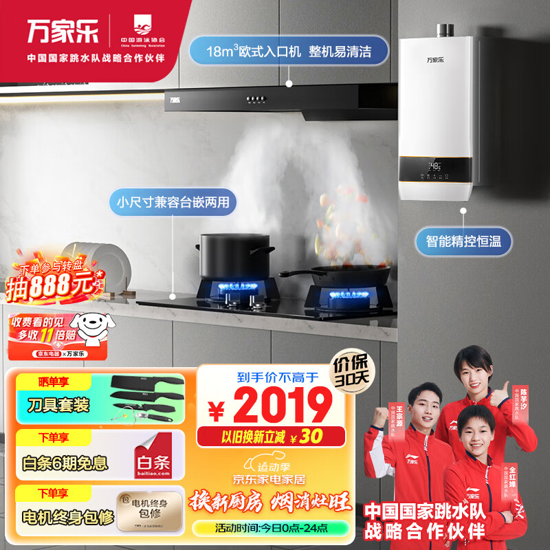 万家乐烟灶热水器套装 18立方油烟机12L智能精准恒温燃气热水器厨房三件套AT031+AY4+12D13天然气价格:2219.00元!