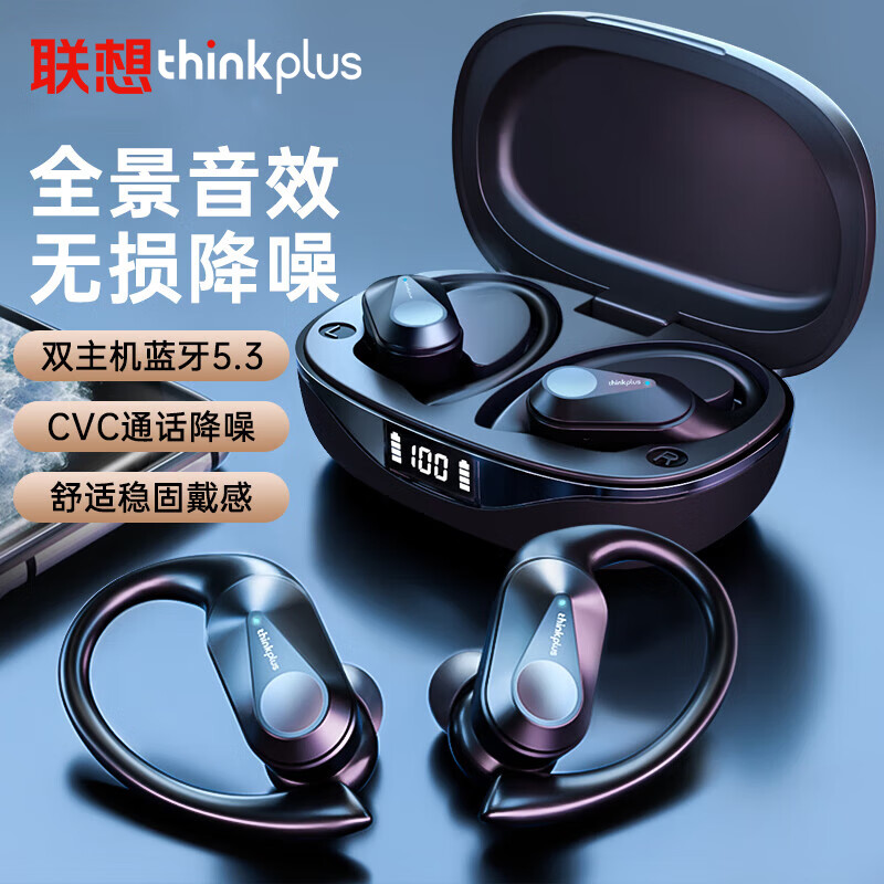 联想(Lenovo)【2024专业运动款】真无线蓝牙运动挂耳式降噪跑步骑行入耳式防水夹耳骨传导概念thinkplus LP75黑价格:139.00元!
