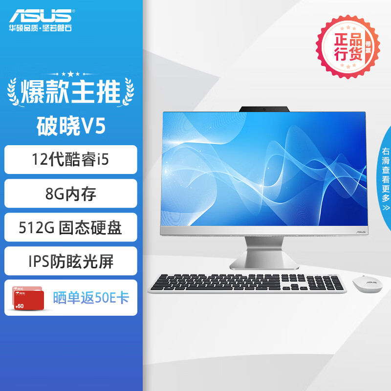 华硕破晓V5 23.8英寸家用商用一体机电脑台式电脑(12代i5-1235U 8G 512G固态 WIFI6蓝牙)白价格:3299.00元!