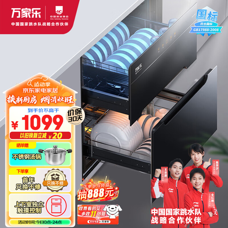 万家乐消毒柜 嵌入式厨房消毒碗柜110L家用 高低温二 紫外线臭氧杀菌 上下层独立控制ZQD110-DQ052价格:1099.00元!