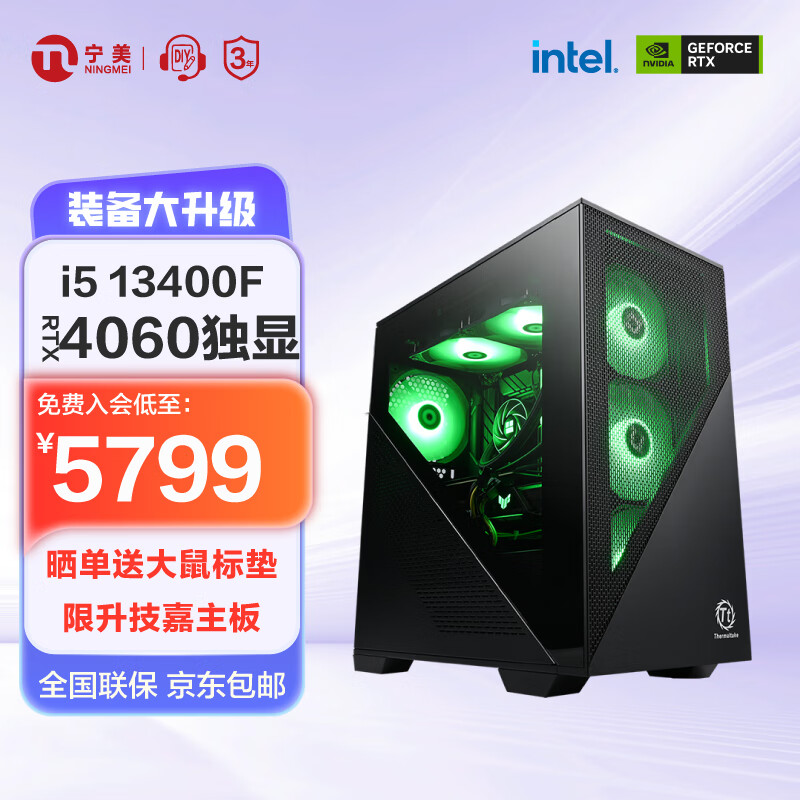 宁美国度魂 13代i5 13400F/RTX4060/16G内存/1T固态/技嘉主板吃鸡永劫无间游戏台式主机/DIY组装电脑UPC价格:5999.00元!