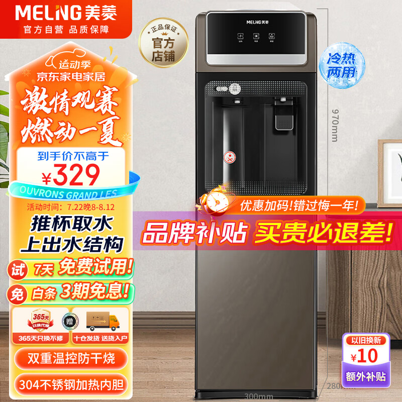 美菱(MeiLing)饮水机家用立式办公双开门柜式冷热型饮水机制冷制热饮水器MY-L208价格:329.00元!