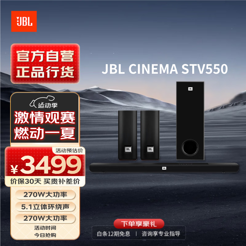 JBL CINEMA STV550电视音响回音壁 5.1声道立体环绕家庭影院soundbar 家用蓝牙音箱价格:3499.00元!