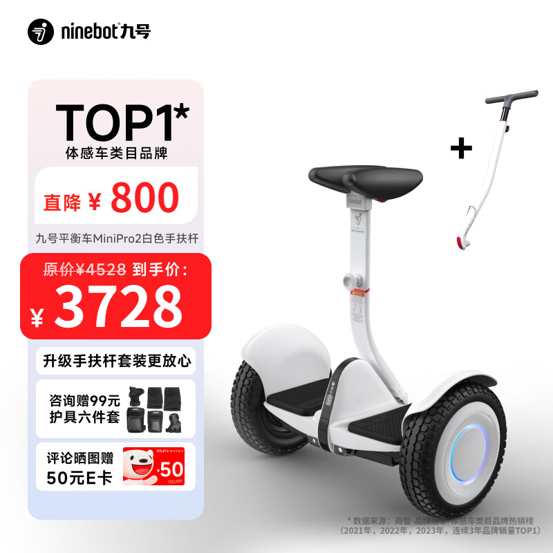九号(Ninebot)MiniPro2白色平衡车+手扶杆套装 35KM长续航智能平衡车电动成人腿控车平行车体感车价格:3698.00元!