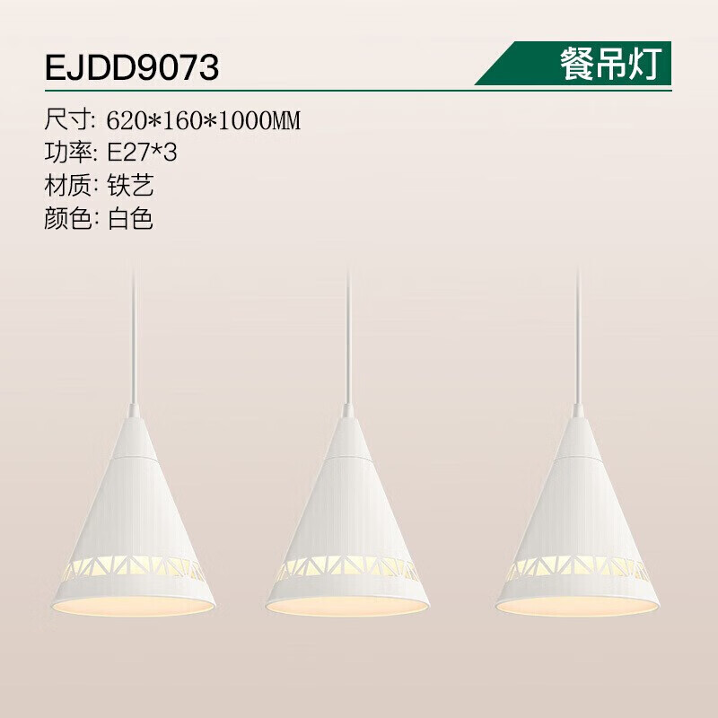雷士(NVC)雷士照明LED餐吊灯餐厅吧台灯具现代简约铁艺三头吊灯 白色价格:188.00元!
