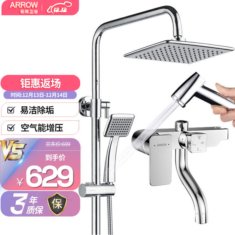箭牌(ARROW)淋浴花洒套装淋浴花洒喷头沐浴增压喷枪手持花洒套装AE3431MS-P1价格:629.00元!