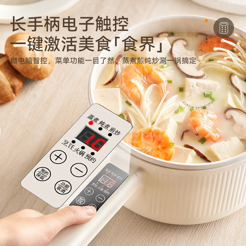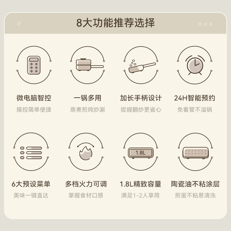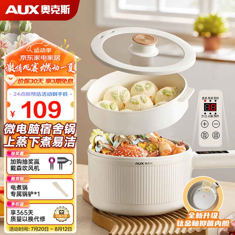 奥克斯(AUX)电煮锅 2.2L宿舍电热锅多功能小电锅电炒锅 学生宿舍泡面锅电火锅迷你煎涮一体锅 HX-18B18 钛金釉易洁涂层(蒸笼款) 2.2L价格:119.00元!
