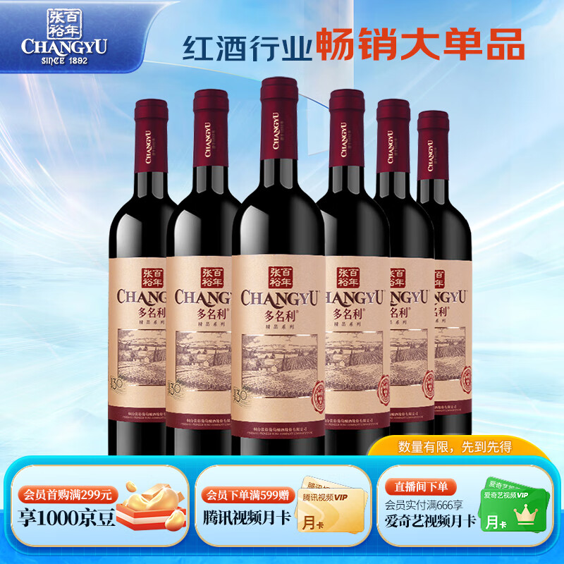张裕 精品干红葡萄酒750ml*6瓶整箱装国产红酒送礼价格:199.00元!
