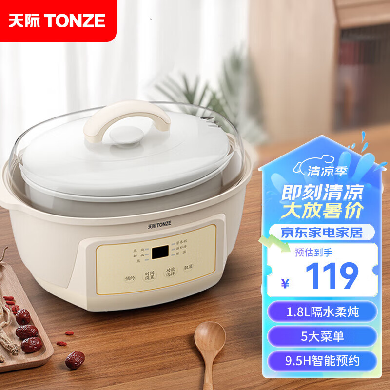 天际电炖锅电炖盅隔水蒸炖煲汤锅炖汤锅 婴儿辅食煮粥锅 养生燕窝炖盅 白瓷胆DGGD23A181BBW 1.8L单胆价格:119.00元!