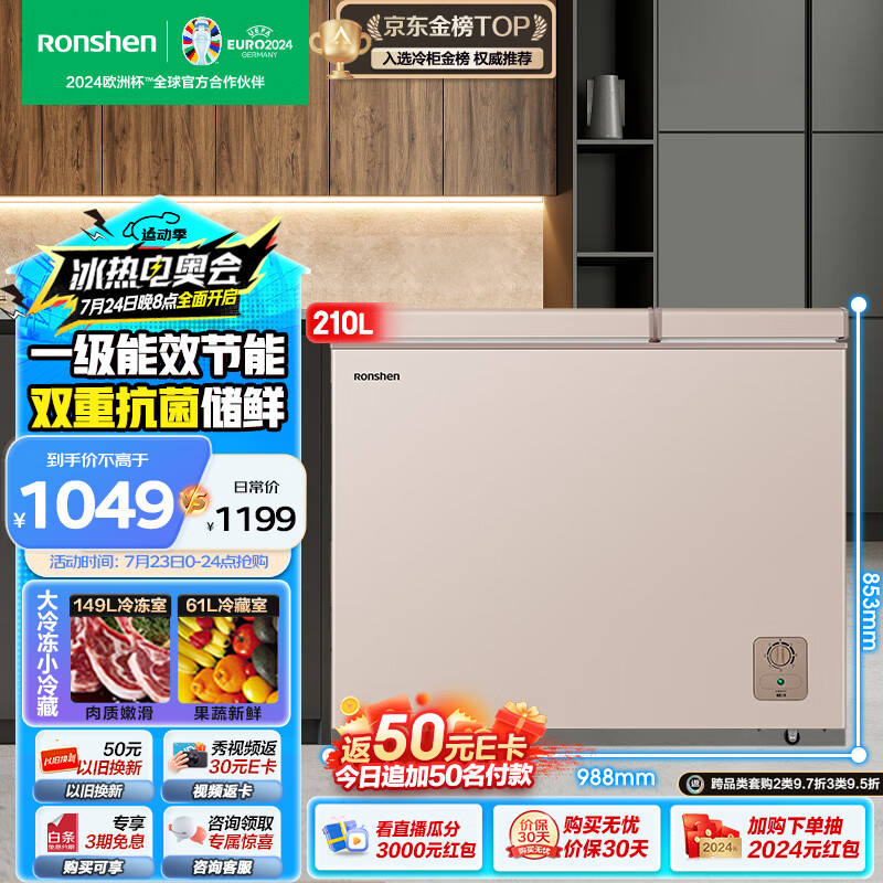 容声(Ronshen) 210升大容量冰柜家用商用冷藏冷冻双温冷柜 一级能效 独立双温 卧式厨房冰箱BCD-210MSA价格:1099.00元!