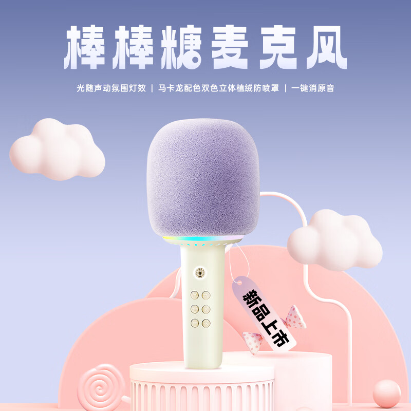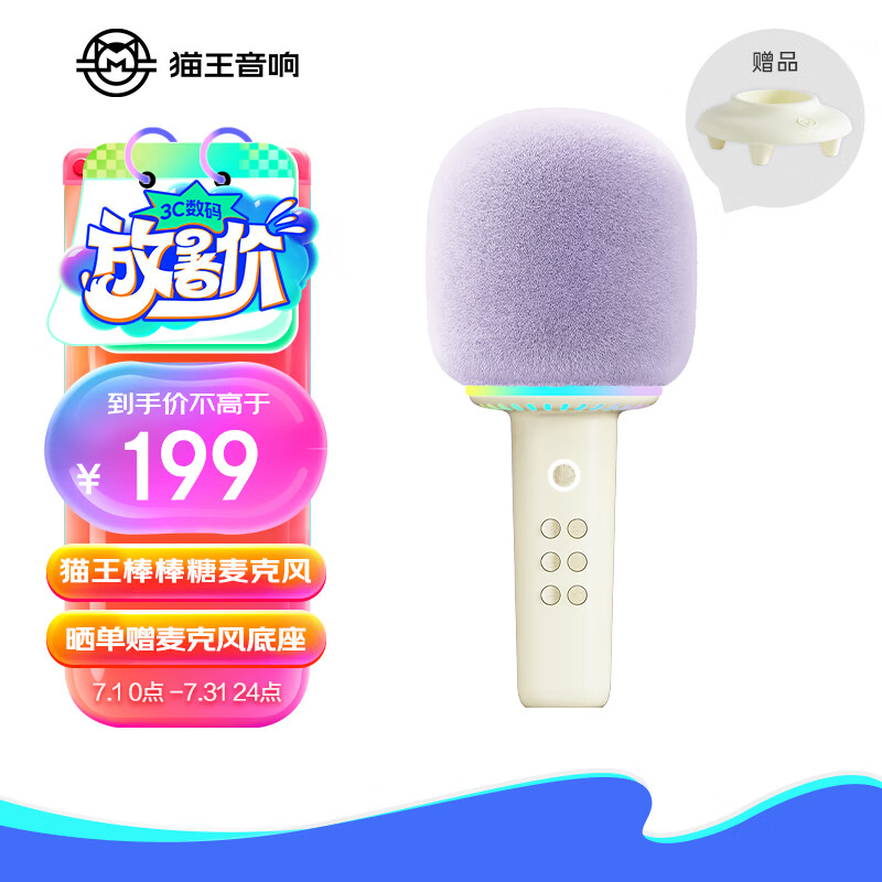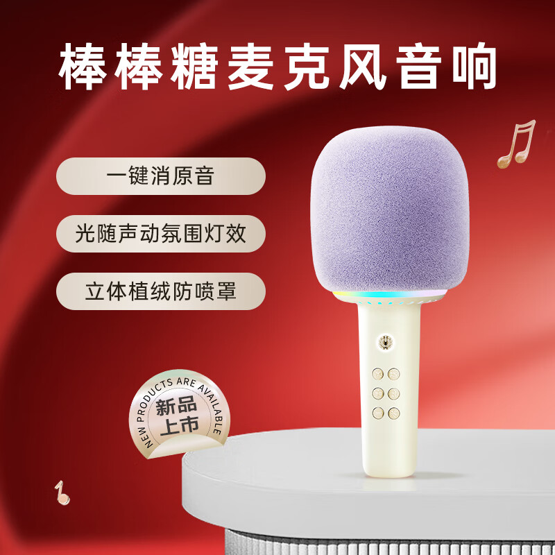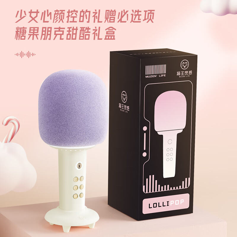 猫王收音机猫王灵感棒棒糖麦克风音响唱歌小话筒一体K歌家用KTV直播唱歌直播录音蓝牙音响 奶盐白价格:199.00元!
