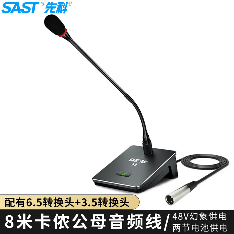 先科(SAST)会议室有线话筒 单支接功放调音台用 电容指向开会桌面鹅颈麦克风 H9价格:599.00元!