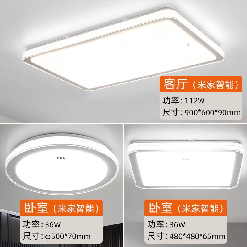 FSL佛山照明LED吸顶灯智能灯具套餐客厅灯卧室灯大户型两室一厅54064价格:1099.00元!