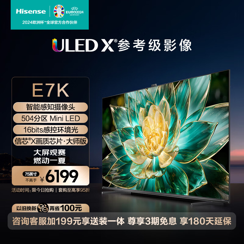 海信电视75E7K 75英寸 ULED X Mini LED 504分区 AI摄像头超感知 智慧屏 液晶智能平板电视机价格:6199.00元!