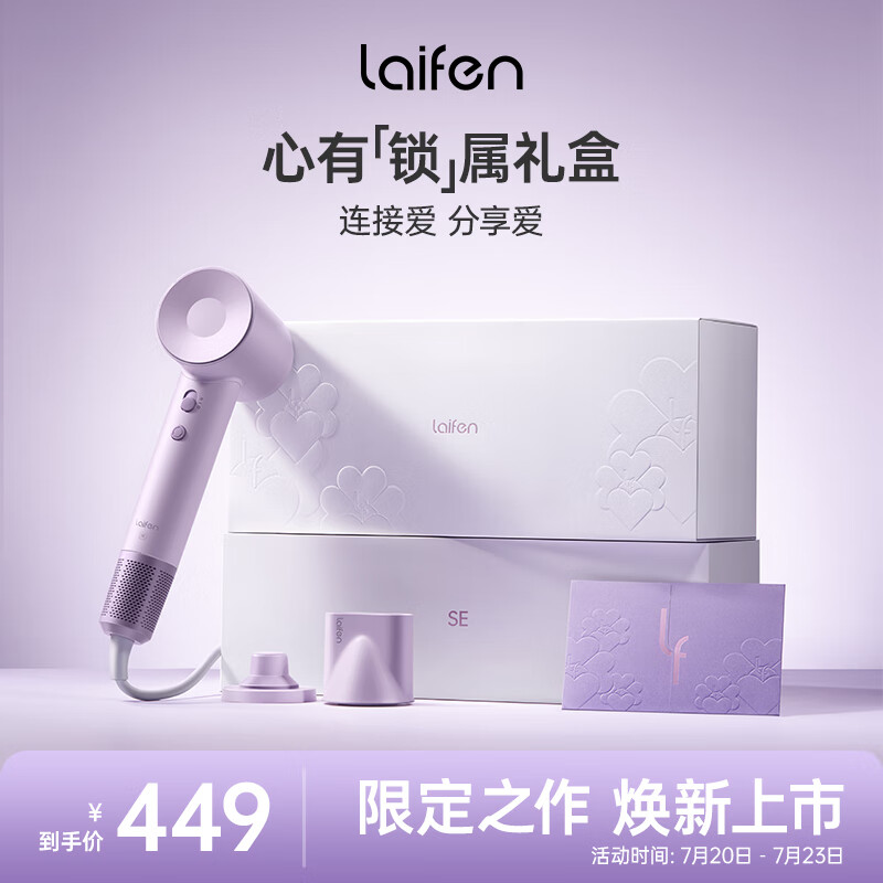 徕芬Laifen 心有锁属高速吹风机礼盒 莱芬家用吹风机 大风力不伤发低噪音电吹风 生日七夕情人节礼物 紫色价格:600.00元!