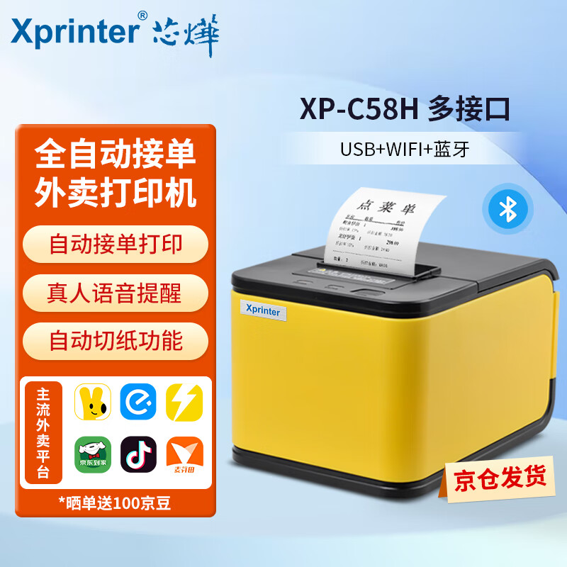 芯烨(XINYE)XP-C58H 外卖全自动接单蓝牙打印机带切刀 美团饿了么百度热敏云打印 票据单收银纸小票机WIFI版价格:449.00元!