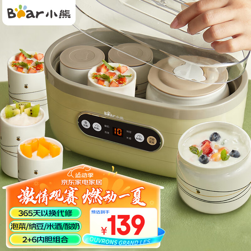 小熊(Bear)酸奶机 家用全自动大容量分杯米酒机酸奶发酵菌纳豆泡菜机SNJ-C10P2(浅绿)价格:132.00元!