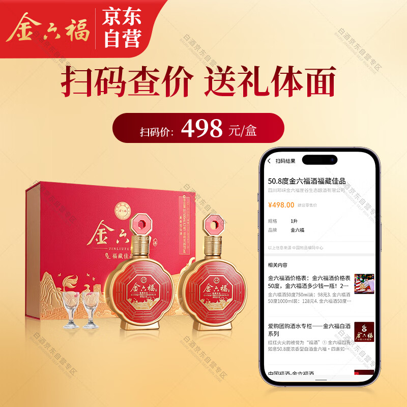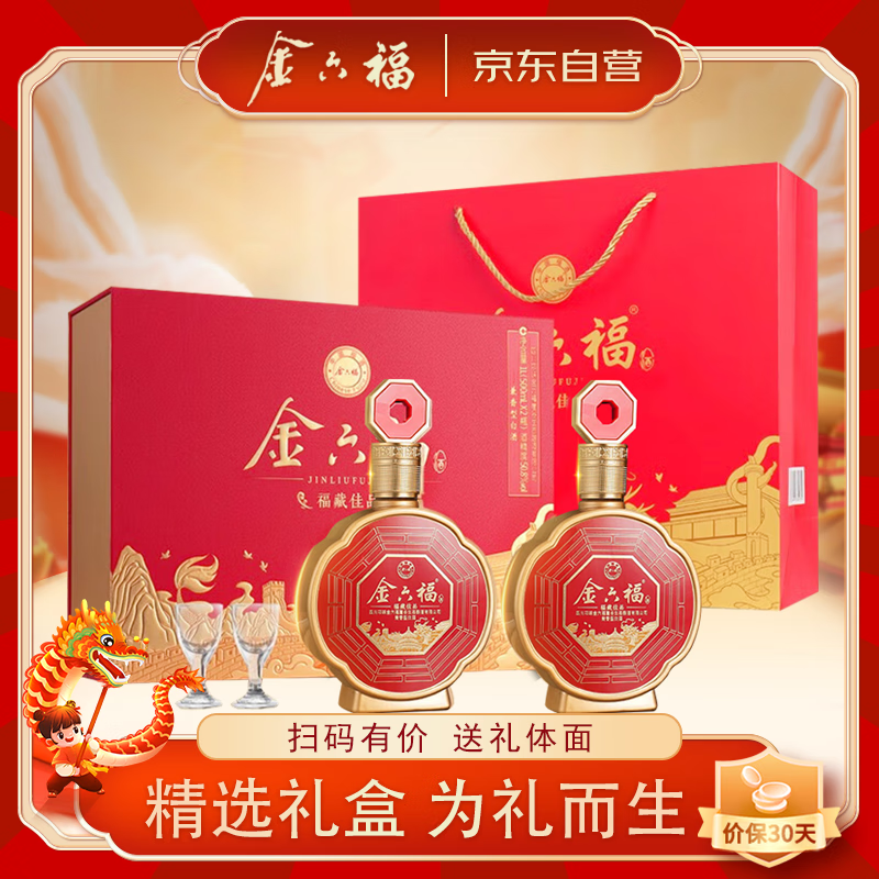 金六福 福藏佳品 50.8度 兼香型白酒礼盒 500ml*2瓶 喜酒红宴请中秋送礼价格:199.00元!