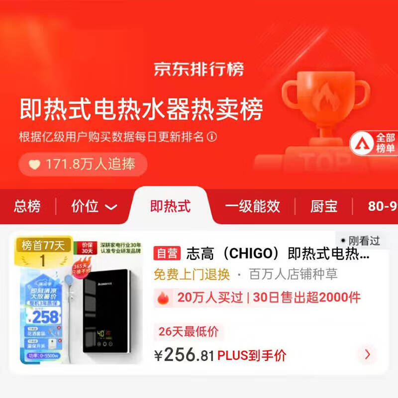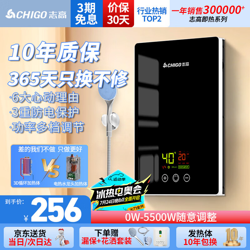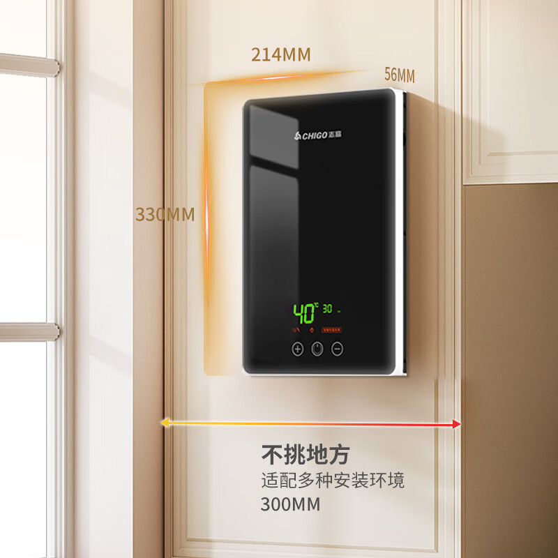 志高(CHIGO)即热式电热水器超薄小厨宝 5500W变频恒温智能省电出租房家用洗澡免储水水龙头黑色 KBR-F60价格:298.00元!