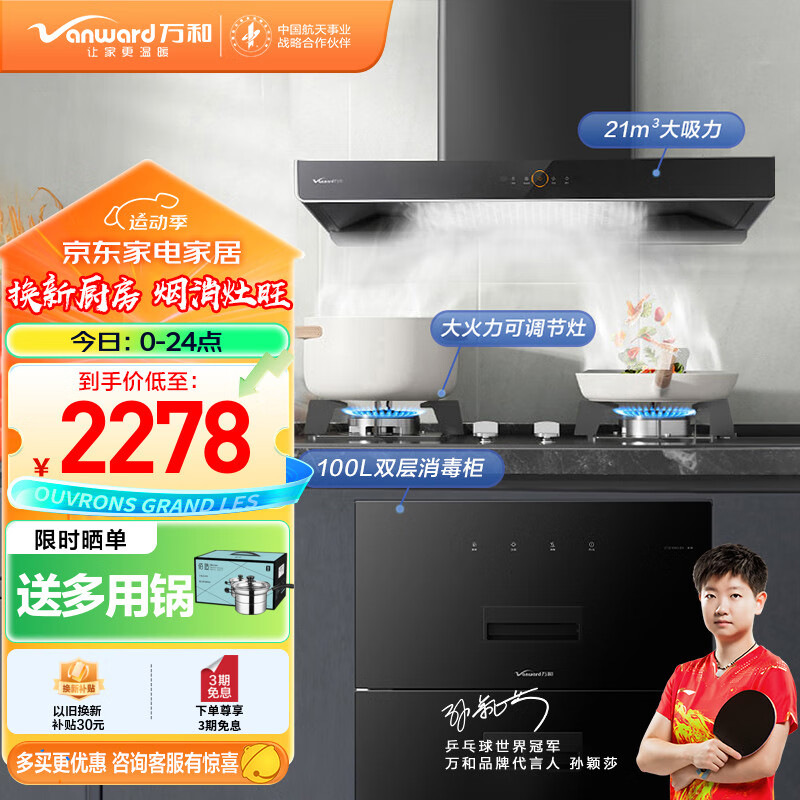 万和(Vanward)烟灶消三件套 厨房多件套 欧式大吸力油烟机燃气灶具消毒柜套装WX536+B7L51+ZTD100Q-D5(天然气)价格:2278.00元!