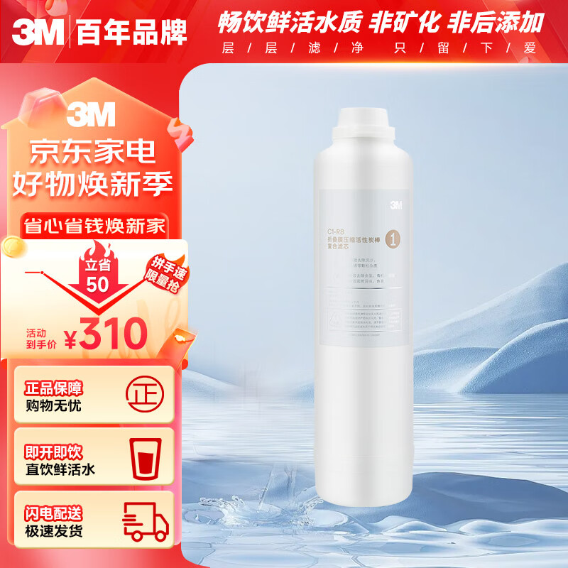 3M净水器家用净水机反渗透净水机R8-39G原装替换滤芯 C1-R8压缩活性炭棒复合滤芯价格:310.00元!