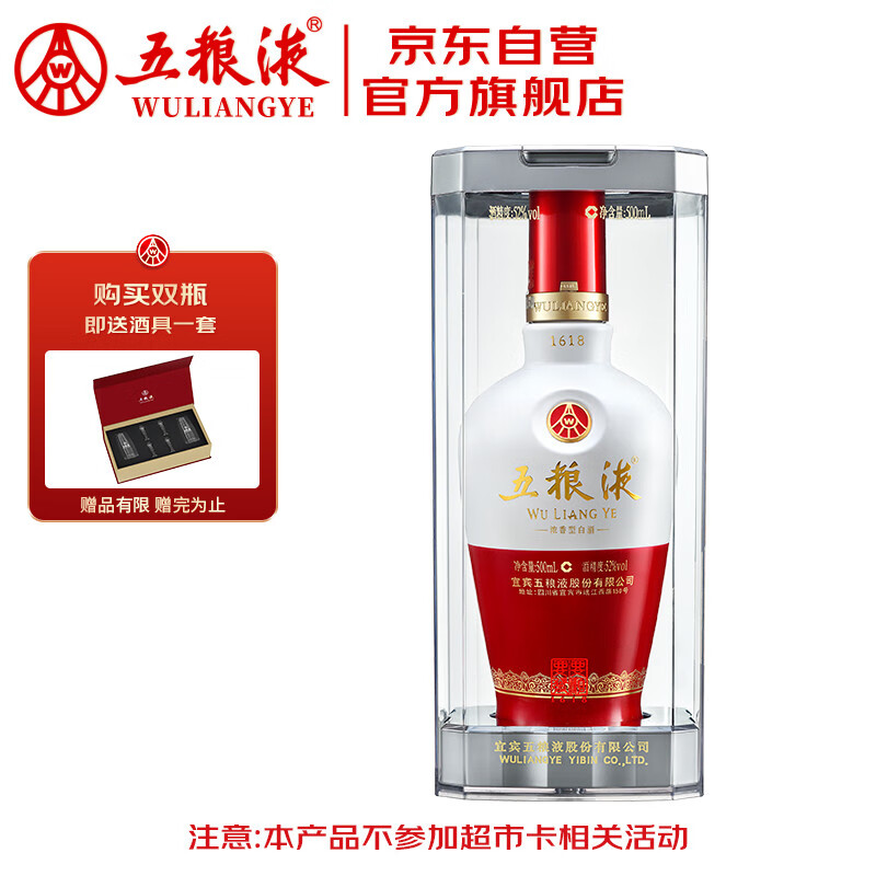 五粮液1618 浓香型白酒 52度 500ml 单瓶装 送礼佳选 新老包装随机发价格:1009.00元!