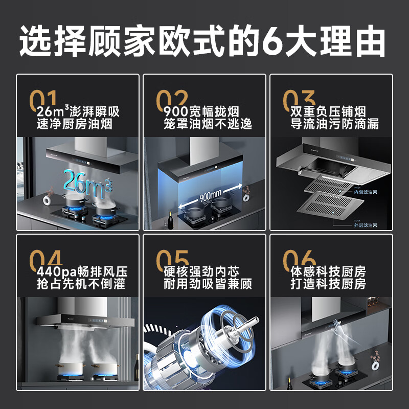 顾家(Gujia)抽油烟机灶具套装26爆炒大吸力家用欧式顶吸油烟机5.0KW燃气灶两件套(液化气)价格:1359.00元!