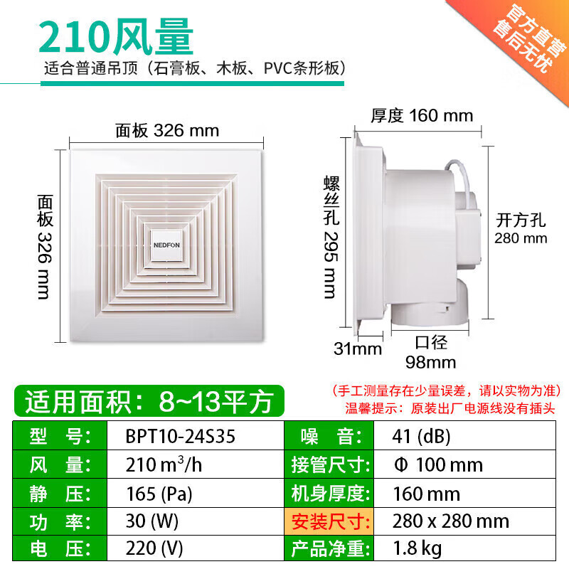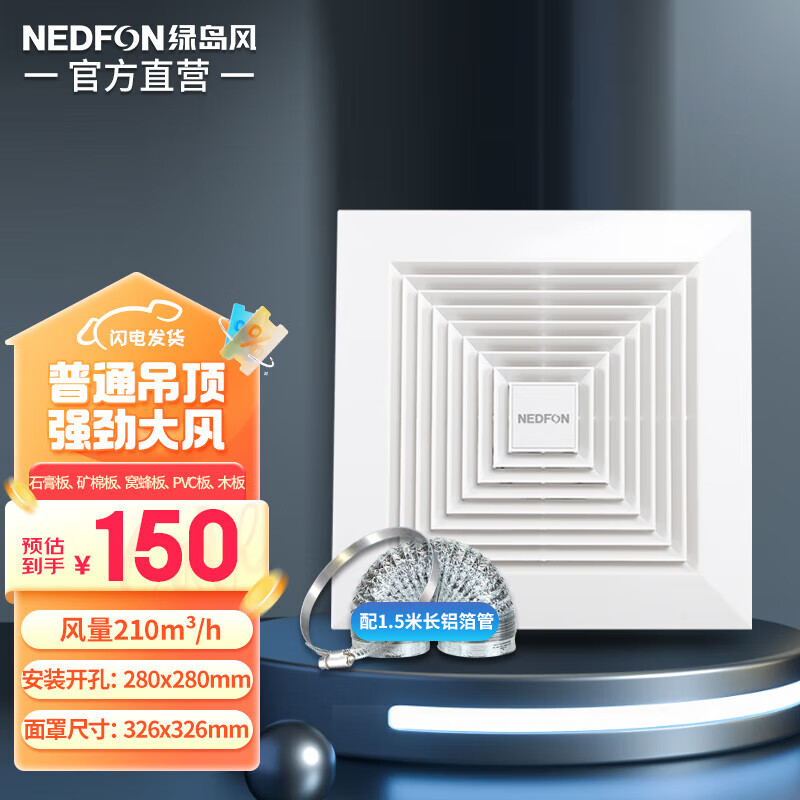 绿岛风(Nedfon)BPT10-24S35 普通吊顶排气扇卫生间厨房管道风机强力换气扇抽风机价格:150.00元!
