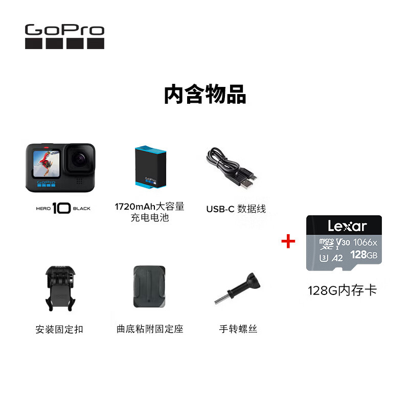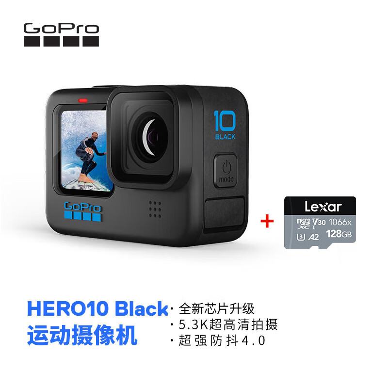 GoProH10 运动相机 户外摩托骑行 潜水防水防抖相机 官方标配加128G存储卡套组价格:2877.00元!