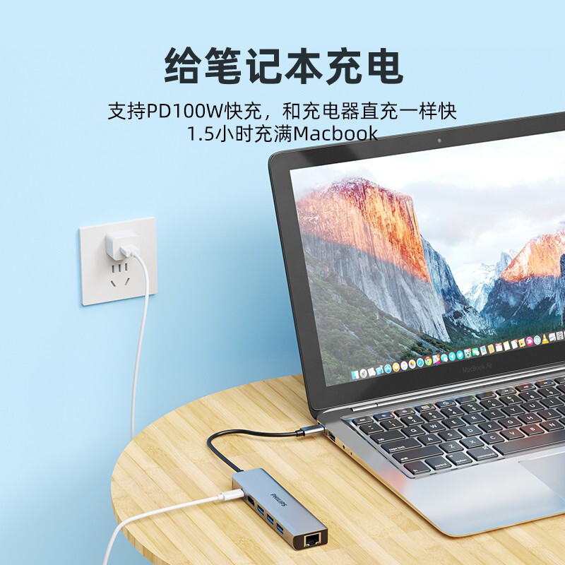 飞利浦Type-C扩展坞网线口USB-C转HDMI转接头usb3.0华为苹果电脑转换器macbook笔记本ipad拓展坞投屏6合1价格:169.00元!