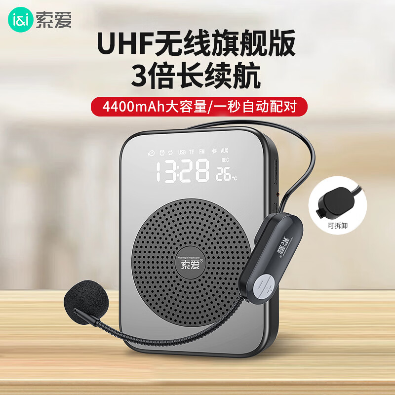 索爱(soaiy) S350UHF无线小蜜蜂扩音器教师专用蓝牙音箱音响防啸叫TF卡U盘喇叭麦克风导游闹钟户外便携式 黑价格:238.00元!