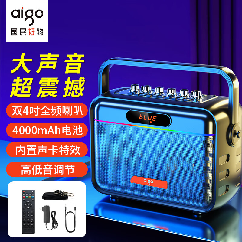 爱国者T189蓝牙音箱无线户外大音量广场舞音响手提便携K歌直播声卡收款播报U盘插卡乐器音响 标准版黑色价格:499.00元!