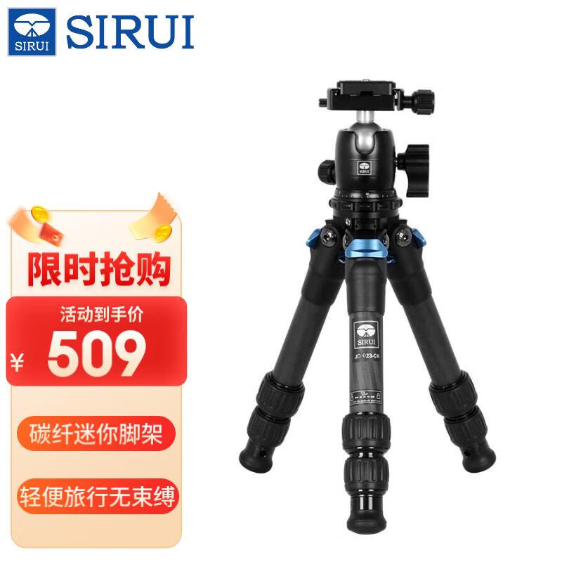 思锐(SIRUI)三脚架 JD-023+B-10K碳纤维含云台佳能尼康单反相机三角架 专业三脚架价格:549.00元!