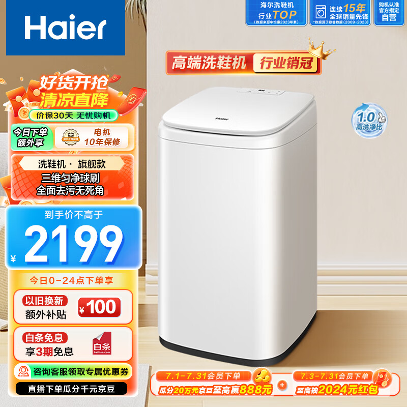 海尔(Haier)洗鞋机 刷鞋机全自动 家用洗鞋神器 1.0洗净比 5KG 电离除菌99.99% 多种鞋型 以旧换新HQD1-TB278价格:2199.00元!