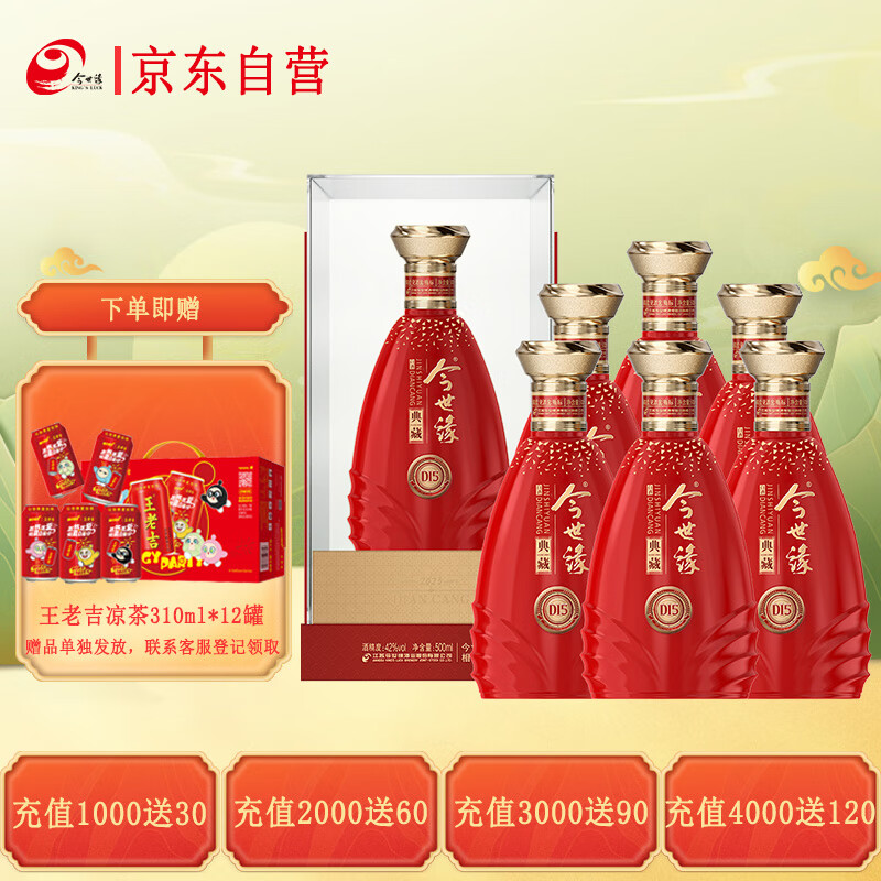 今世缘 典藏15 柔雅型 白酒 42度 500ml*6瓶 整箱装价格:1110.00元!
