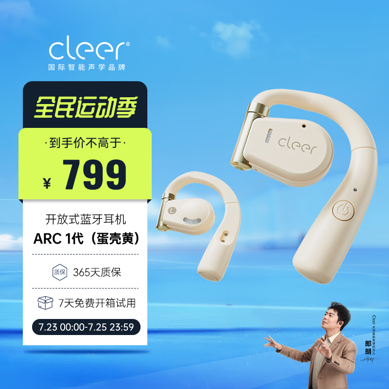 cleerARC 1 代音弧蓝牙运动跑步夹耳式耳机无线骑行行骨传导升级开放挂耳式气传耳麦适用苹果华为节日礼 蛋壳黄【充电盒升级款-续航18H】价格:799.00元!