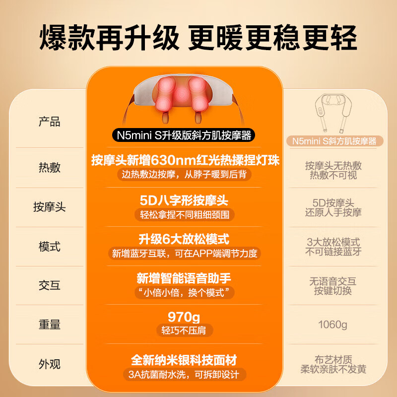 倍轻松(breo)N5mini系列颈部按摩器 颈椎肩颈斜方肌 腿腰颈部按摩披肩按摩仪 节日生日礼物礼品送女友 【重磅升级】N5minis升级版-智能操控价格:539.00元!