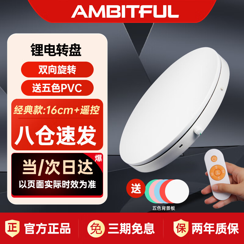 AMBITFUL可调速摄影拍摄电动转盘旋转产品展示台小珠宝直播调速拍摄架模型自动拍照台底座 价格:159.00元!