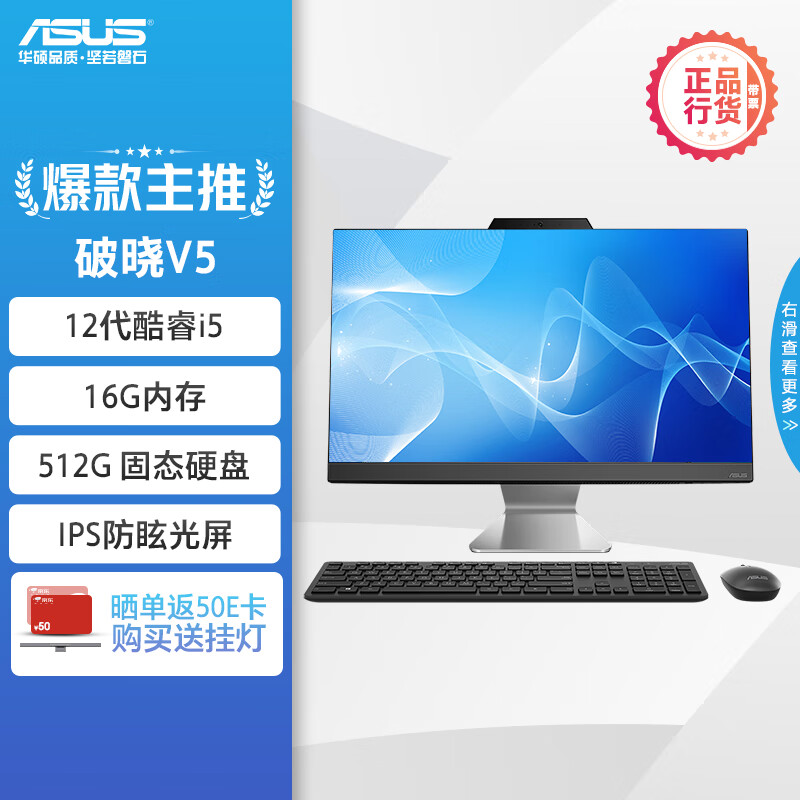 华硕破晓V5 23.8英寸家用商用一体机电脑台式电脑(12代i5-1235U 16G 512G固态 WIFI6蓝牙)黑价格:3599.00元!