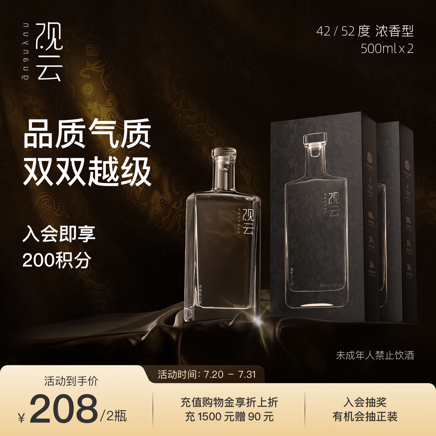 观云出东方 浓香型白酒 42度 500ml*2瓶 礼袋装 纯粮酿造 送礼宴请价格:298.00元!