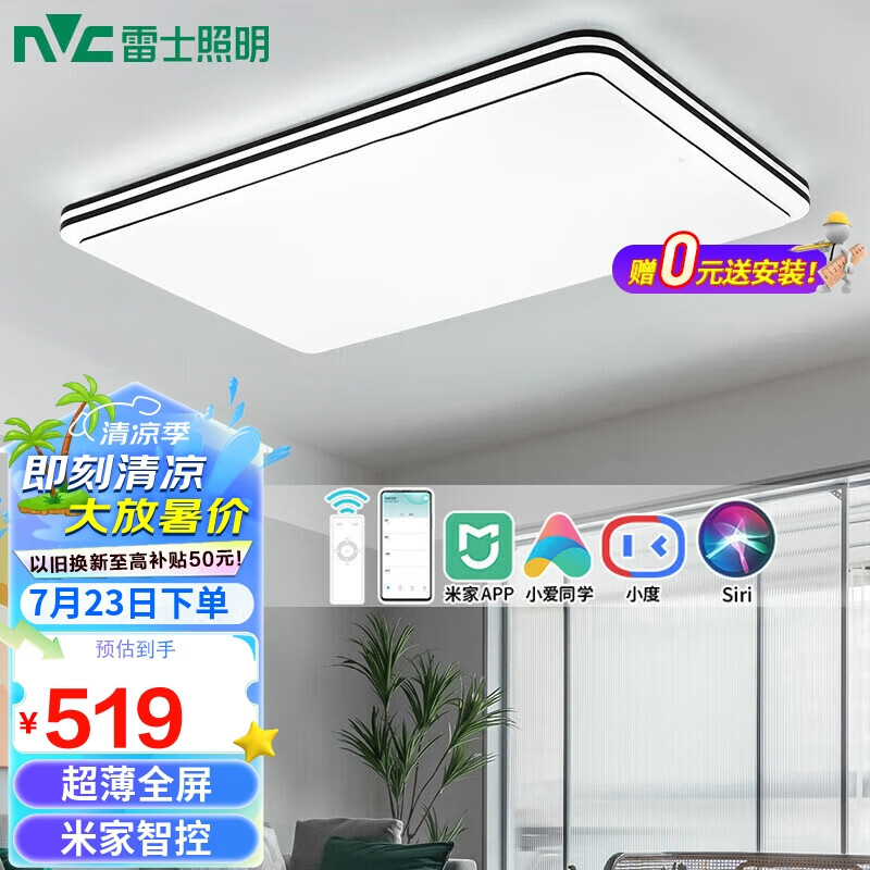 雷士(NVC)客厅大灯吸顶灯米家智能调光超薄现代简约led照明灯具黑色简影X价格:919.00元!