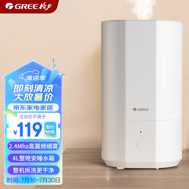 格力(GREE)加湿器静音卧室 银离子抑菌整机拆洗空气加湿器桌面立式大雾量办公室宿舍家用 空调伴侣(40x70a)价格:119.00元!