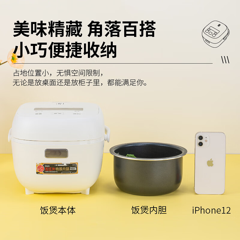 3、体积小巧,美观。有二档预约功能很好用。饭烧好口感很好,??糯!清洗方便,设计合理。