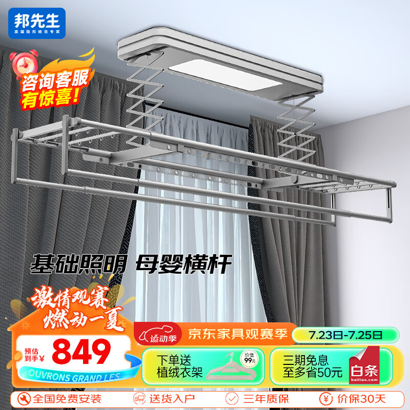 邦先生电动晾衣架智能小阳台全自动升降伸缩遥控米家用凉晒衣杆机M50S灰价格:849.00元!