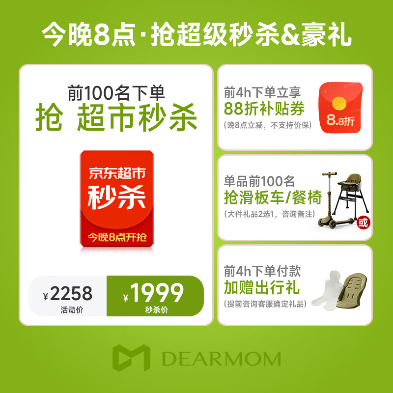 DearMom婴儿推车罗马假日双向可坐可躺轻便高景观大座舱可登机伞车 绿价格:2658.00元!