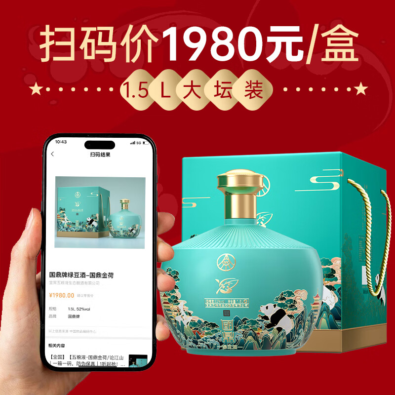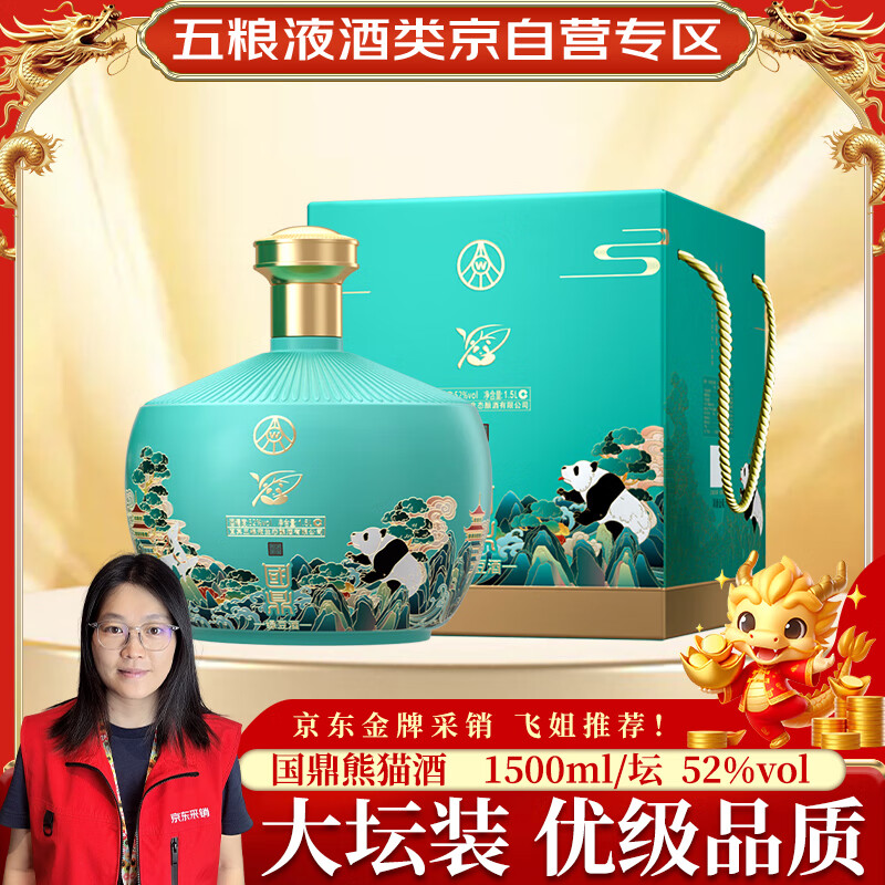 五粮液生态酿酒公司 国鼎金荷熊猫52度1.5L大坛礼盒装酒水白酒送礼价格:219.00元!