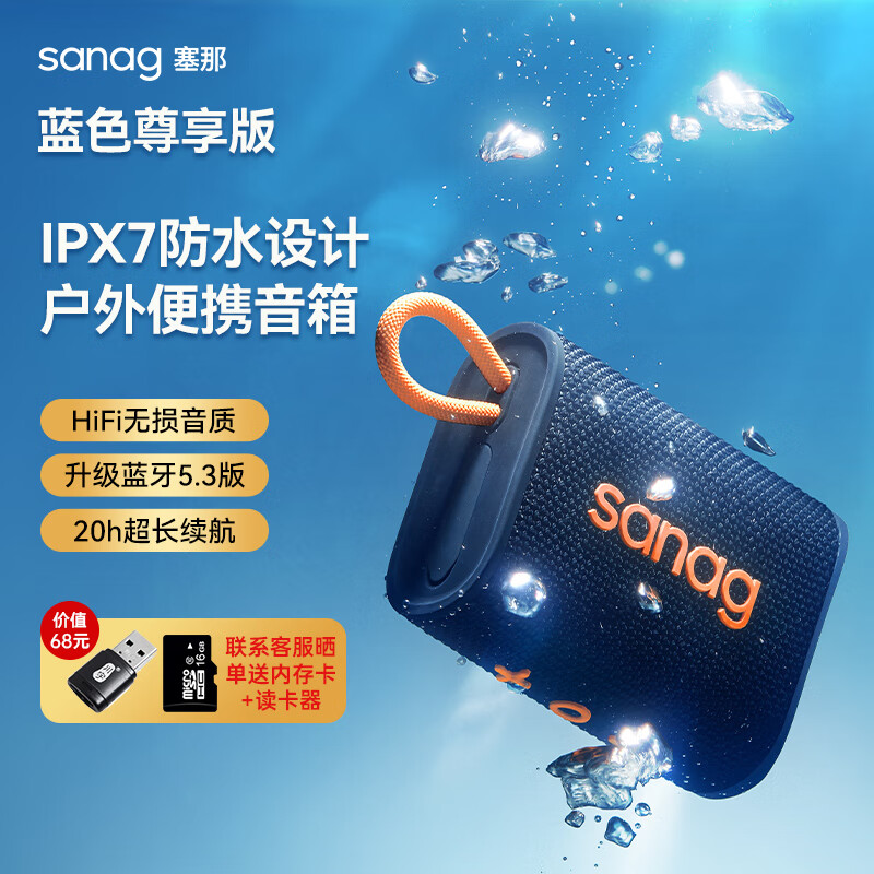 SANAG塞那 蓝牙音箱便携式 户外音响 小型低音炮桌面微信收款扩音器 户外骑行防水设计 M13SProMax 蓝价格:319.00元!