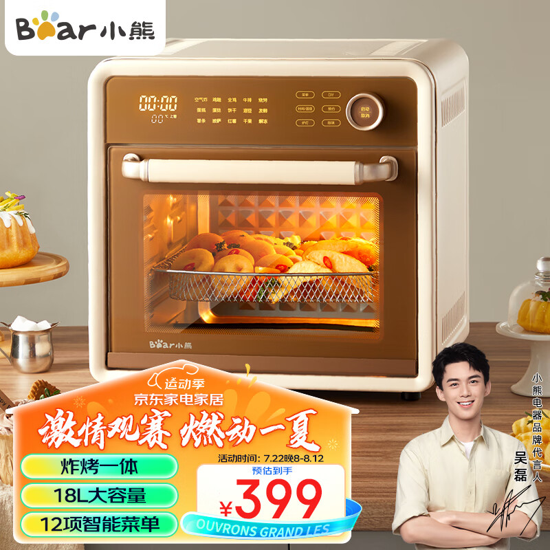 小熊(Bear)电烤箱家用空气炸烤箱空气炸锅烤箱一体机多功能蒸汽烤炸一体高效脱脂循环热风免翻面18L F18G5价格:399.00元!