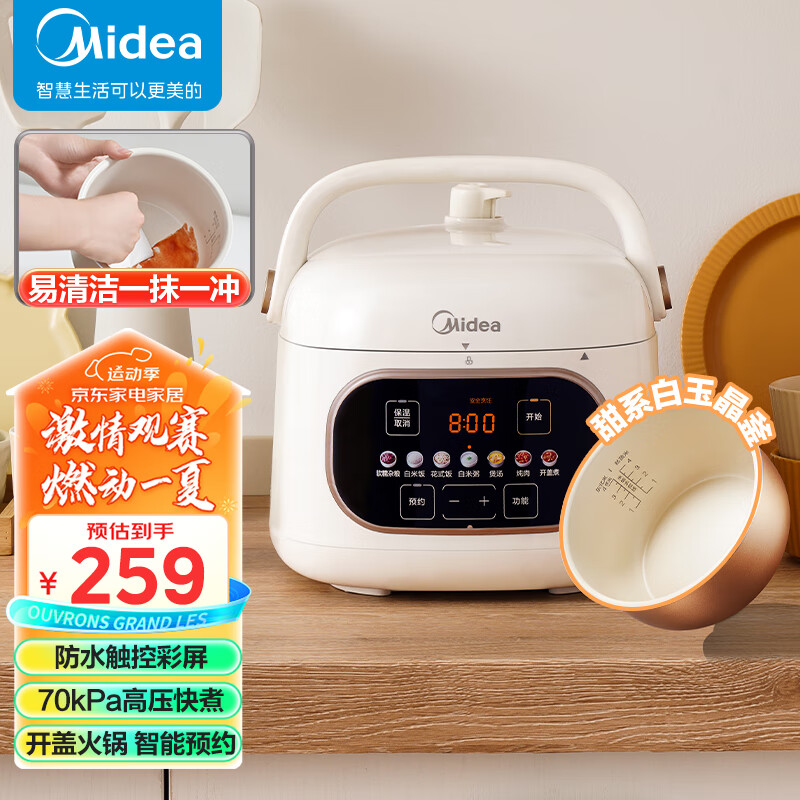 美的(Midea)一人食迷你电锅2.2L开盖火锅家用智能预约触控面板白晶易清洁内胆MY-C244高压锅电饭煲1-3人价格:289.00元!